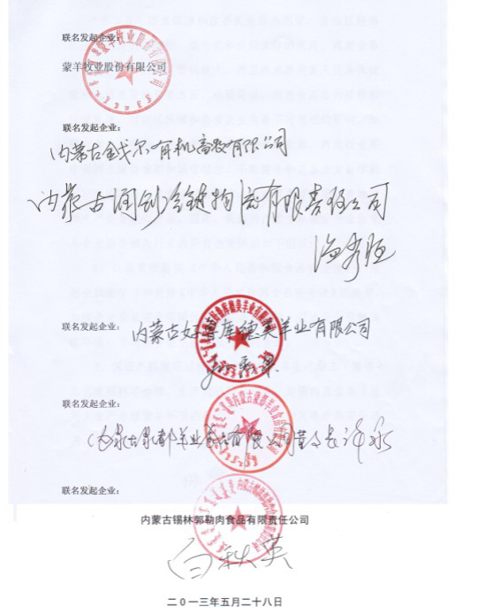 “十二五”以來(lái)保障和改善民生作為國家、自治區經(jīng)濟社會(huì )事業(yè)發(fā)展的綱領(lǐng),成為黨和政府工作的主題。肉類(lèi)食品不僅對于物價(jià)的穩定影響較大,而且歷來(lái)是關(guān)系人民身體健康和生活質(zhì)量的重要方面。也就是說(shuō),肉類(lèi)食品業(yè)的健康和快速發(fā)展,對我區保障和改善民生有著(zhù)不可忽視的影響。加強肉類(lèi)食品安全,杜絕安全隱患是企業(yè)的天職,肉類(lèi)行業(yè)要牢固樹(shù)立道德準則和誠信理念,不斷健全和完善企業(yè)自律機制,堅決執行肉類(lèi)食品安全標準,以對消費者高度負責的精神生產(chǎn)安全放心產(chǎn)品。因此,我們對內蒙古農牧業(yè)產(chǎn)業(yè)化龍頭企業(yè)協(xié)會(huì )相關(guān)行業(yè)內所有企業(yè)提出如下倡議: