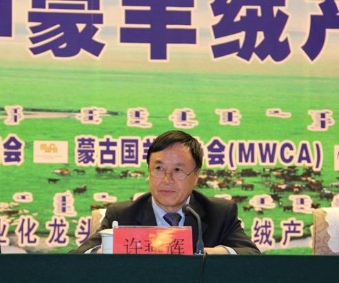 內蒙古自治區(qū)農牧業(yè)廳副廳長許燕輝首先致辭。他在致辭中講到,中蒙兩國的羊絨產量占世界總產量的90%以上,中蒙羊絨產業(yè)會議在內蒙古召開意義重大,通過多方互動交流,就羊絨產情、絨價等行業(yè)共同關注情況的交流,對進一步增強中蒙羊絨產業(yè)在全球羊絨業(yè)界的權重,凸顯內蒙古自治區(qū)在全球羊絨行業(yè)的影響和作為全球最大羊絨主產區(qū)和加工區(qū)的地位意義重大,對內蒙古羊絨產業(yè)持久穩(wěn)定發(fā)展起到不可忽視的推動作用。而且內蒙古發(fā)展羊絨產業(yè)具有得天獨厚的優(yōu)勢,第一、我區(qū)在絨山羊品種、羊絨產量、質量三方面占絕對優(yōu)勢;第二、我區(qū)在羊絨加工總量大,加工能力強;第三、我區(qū)羊絨制品在內銷市場和品牌數(shù)量優(yōu)勢明顯;第四、我區(qū)產業(yè)園區(qū)建設初具規(guī)模。他希望通過這次會議,可以走出一條中蒙羊絨產業(yè)創(chuàng)新之路。