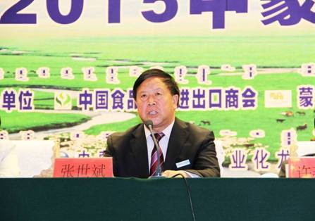 內蒙古農牧業(yè)產業(yè)化龍頭企業(yè)協(xié)會會長張世斌在會上講話