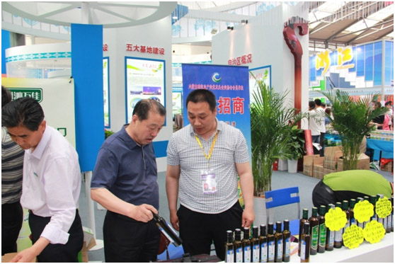 內(nèi)蒙古農(nóng)牧業(yè)廳產(chǎn)業(yè)化處處長(zhǎng)王補(bǔ)在與協(xié)會(huì)執(zhí)行會(huì)長(zhǎng)林永亮參觀展位