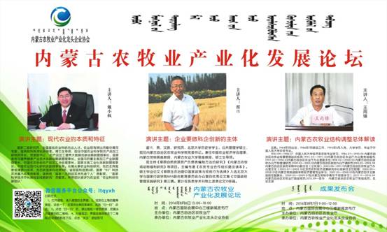 綠博會期間,由自治區(qū)農(nóng)牧業(yè)廳主辦、內(nèi)蒙古農(nóng)牧業(yè)產(chǎn)業(yè)化龍頭企業(yè)協(xié)會承辦的內(nèi)蒙古農(nóng)牧業(yè)產(chǎn)業(yè)化發(fā)展論壇如期舉行。論壇旨在推動現(xiàn)代農(nóng)牧業(yè)發(fā)展方式轉(zhuǎn)變,聚焦農(nóng)牧業(yè)供給側(cè)結(jié)構(gòu)性改革和互聯(lián)網(wǎng)+發(fā)展思路,邀請區(qū)內(nèi)外農(nóng)牧業(yè)領(lǐng)域知名專家和學者現(xiàn)場傳授,共同探討,共享綠博會成果,共商產(chǎn)業(yè)發(fā)展大計。論壇同期發(fā)布第四屆內(nèi)蒙古名優(yōu)特農(nóng)畜產(chǎn)品和第三屆包裝設(shè)計大賽評審結(jié)果,內(nèi)蒙古日報、農(nóng)民日報82日第四版同時公布獲獎名單,敬請關(guān)注。