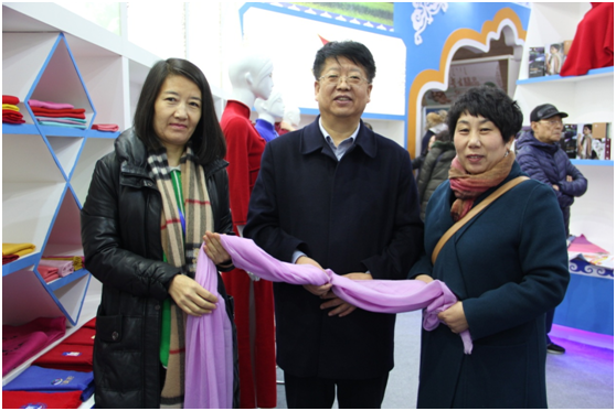 農牧業(yè)廳產業(yè)化處處長侯雁冰、副處長郟金梅參觀羊絨展區(qū)