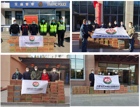 6、會員單位-內(nèi)蒙古草原紅太陽食品股份有限公司:10月1日-10月6日,內(nèi)蒙古草原紅太陽食品股份有限公司、紅太陽公益基金會分別走訪慰問興隆巷街道辦事處清泉社區(qū)、云中路辦事處、玉泉區(qū)小黑河鎮(zhèn)人民政府和堅守在各崗位的公安系統(tǒng)、應(yīng)急管理系統(tǒng)、工信系統(tǒng)、衛(wèi)健委系統(tǒng)等14家單位的防疫一線人員,共計捐贈燒烤醬、復(fù)合調(diào)味醬、金標生抽、草菇老抽等系列調(diào)味品720件,累計捐贈金額83439元。