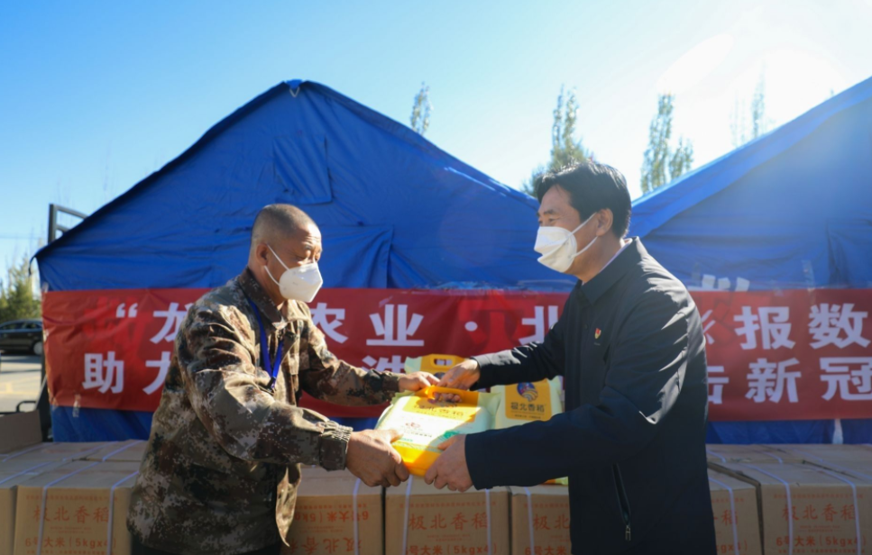 7、副會長單位-龍鼎(內(nèi)蒙古)農(nóng)業(yè)股份有限公司:10月4日,“龍鼎農(nóng)業(yè)·北方新報數(shù)字農(nóng)場”為呼和浩特市新城區(qū)紅山口村封控區(qū)內(nèi)居民送去1萬袋總價值88萬元的極北香稻,這批大米將由工作人員送到封控區(qū)近萬戶居民家中。
