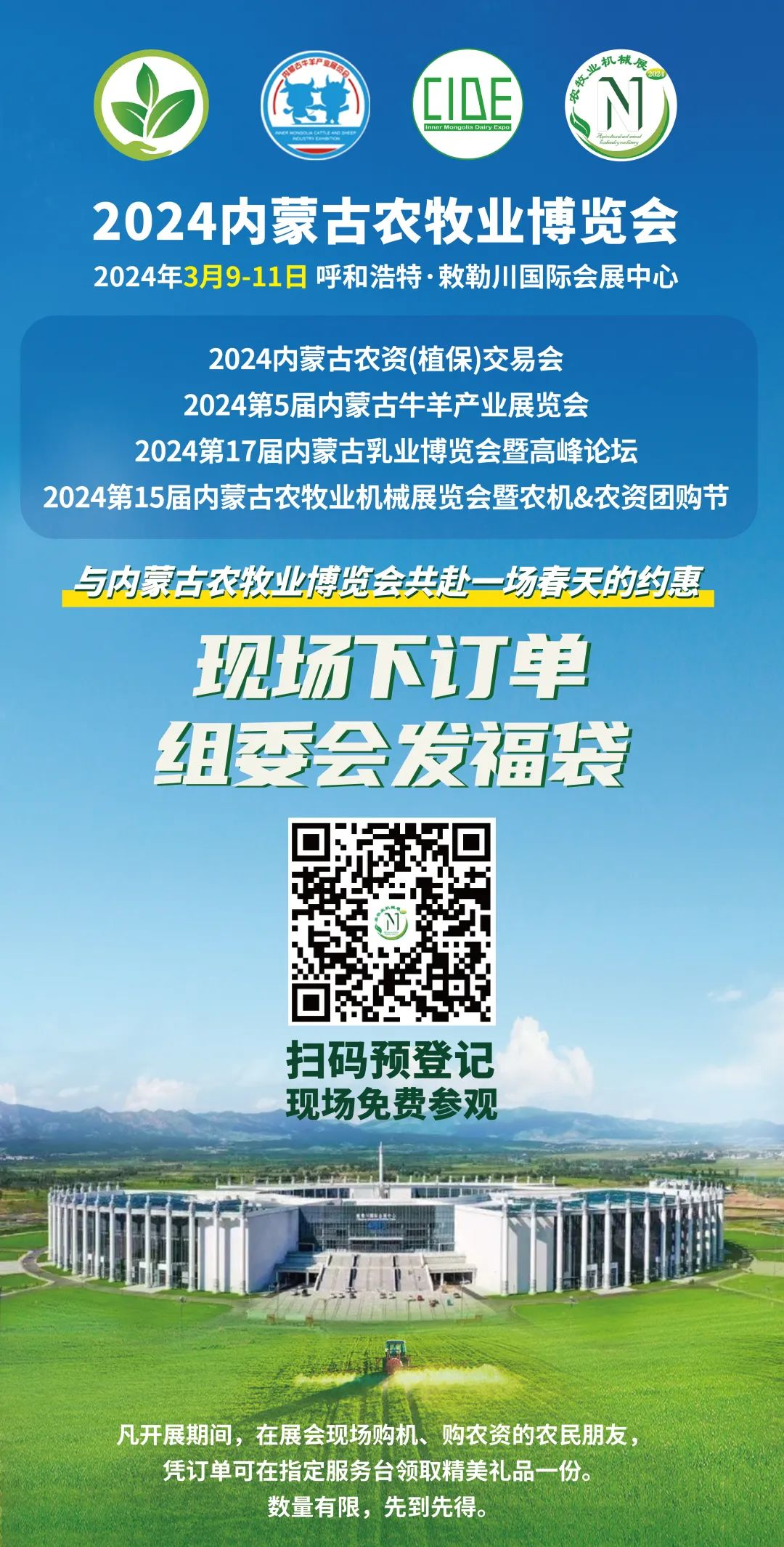 本次展會(huì )由艾克思博國際會(huì )展集團,內蒙古農牧業(yè)產(chǎn)業(yè)化龍頭企業(yè)協(xié)會(huì )、上海博朝展覽服務(wù)有限公司聯(lián)合舉辦,大會(huì )同期還將舉辦2024內蒙古農牧業(yè)博覽會(huì )、2024第17屆內蒙古乳業(yè)博覽會(huì )暨高峰論壇、2024第5屆內蒙古牛羊產(chǎn)業(yè)展覽會(huì )、2024內蒙古農資(植保)交易會(huì ),今年展會(huì )整體規模更大、產(chǎn)品更加豐富,展品從農機裝備、牛羊養殖、乳品工業(yè)、農資植保乃至品牌終端,覆蓋農牧業(yè)全產(chǎn)業(yè)鏈高端人脈,充分滿(mǎn)足農牧民朋友的采購需求。如您有一站式采購需求,請一定不要錯過(guò)本場(chǎng)行業(yè)盛會(huì )。