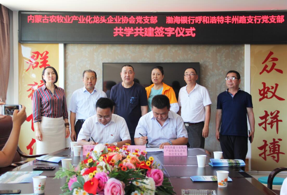 活動(dòng)過(guò)程中,為創(chuàng )造性地推進(jìn)黨組織“共學(xué)共建”結對工作,圍繞新時(shí)代黨的建設總要求,內蒙古農牧業(yè)產(chǎn)業(yè)化龍頭企業(yè)協(xié)會(huì )黨支部和渤海銀行呼和浩特豐州路支行黨支部簽訂了《共學(xué)共建結對協(xié)議》。通過(guò)結對共建,在弘揚社會(huì )正能量、加強愛(ài)國主義教育等方面樹(shù)立新典型,力爭在構建銀企合作關(guān)系等方面取得新突破。