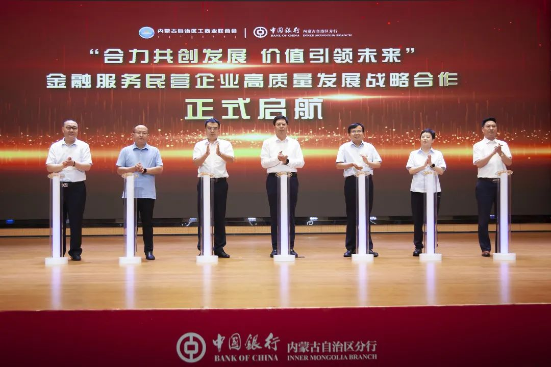在與會(huì )人員的共同見(jiàn)證下,中國銀行內蒙古自治區分行與自治區工商聯(lián)金融服務(wù)民營(yíng)企業(yè)高質(zhì)量發(fā)展戰略合作正式啟航。