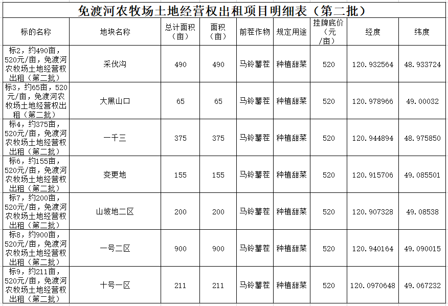 4.規定用途:第一批種植馬鈴薯,第二批種植甜菜,詳情以明細表為準