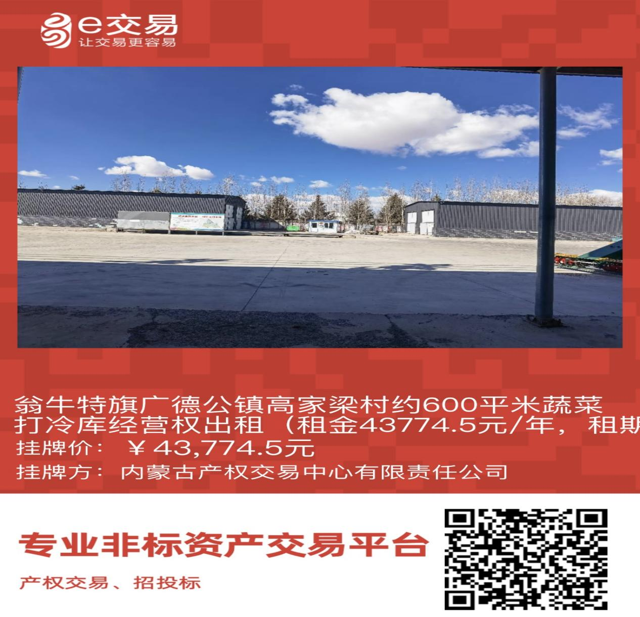 翁牛特旗廣德公鎮高家梁村約600平米蔬菜打冷庫經(jīng)營(yíng)權出租(租金43774.5元/年,租期5年)