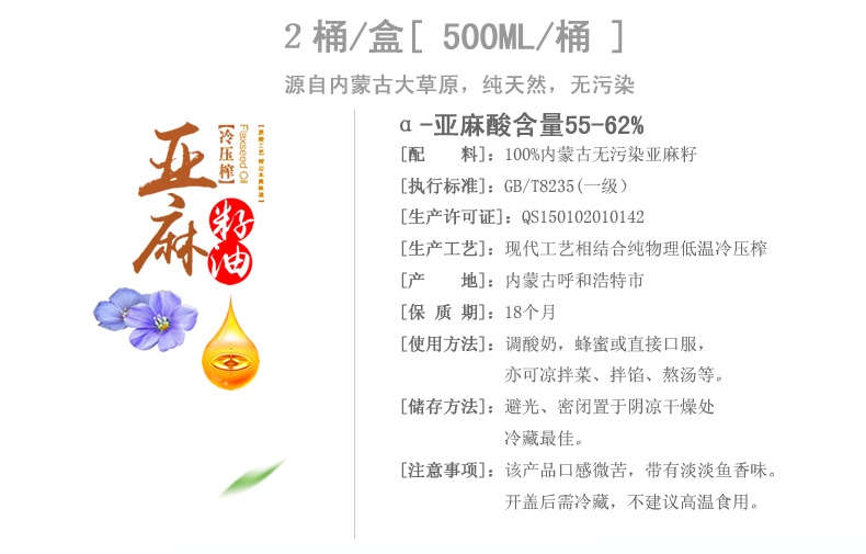 產(chǎn)品名稱(chēng):禮盒裝亞麻籽油 金谷金牧冷榨亞麻籽油 食用亞麻籽油 批發(fā)特價(jià)