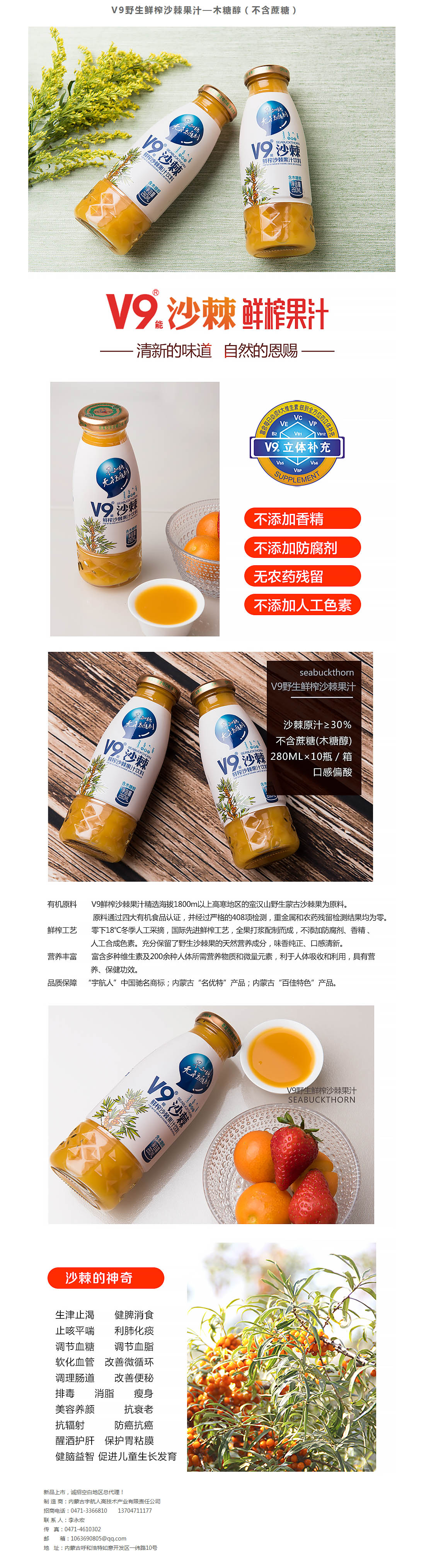 產(chǎn)品名稱(chēng):V9野生鮮榨沙棘果汁—木糖醇(不含蔗糖)