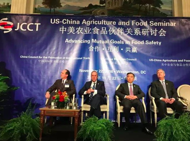 美國時(shí)間2016年11月22日,第 27 屆中美商貿聯(lián)委會(huì )在華盛頓舉行。作為世界肉類(lèi)組織成員和中國牛肉產(chǎn)業(yè)龍頭的科爾沁牛業(yè),受邀參加本屆聯(lián)委會(huì )重要活動(dòng)—中美農業(yè)食品伙伴關(guān)系研討會(huì ),與兩國農商專(zhuān)家、代表進(jìn)行親切交流。中國國務(wù)院副總理汪洋與美國商務(wù)部長(cháng)普利茲克,貿易代表弗羅曼共同主持會(huì )議,美國農業(yè)部長(cháng)維爾薩克出席。