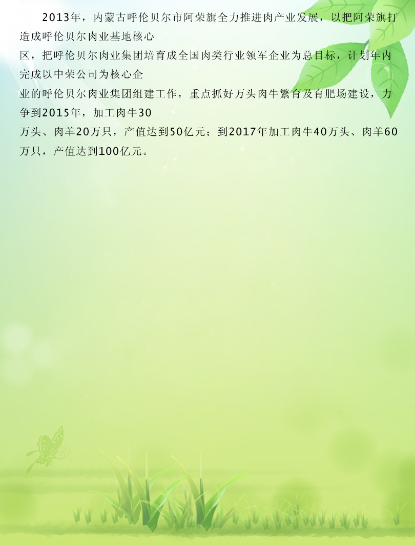 發(fā)布者:[呼倫貝爾肉業(yè)(集團)股份有限公司]  發(fā)布時(shí)間:[2017/03/21]  閱讀:1561