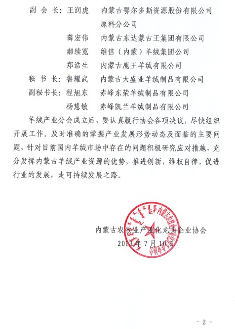 關(guān)于成立羊絨產(chǎn)業(yè)分會(huì )的通知