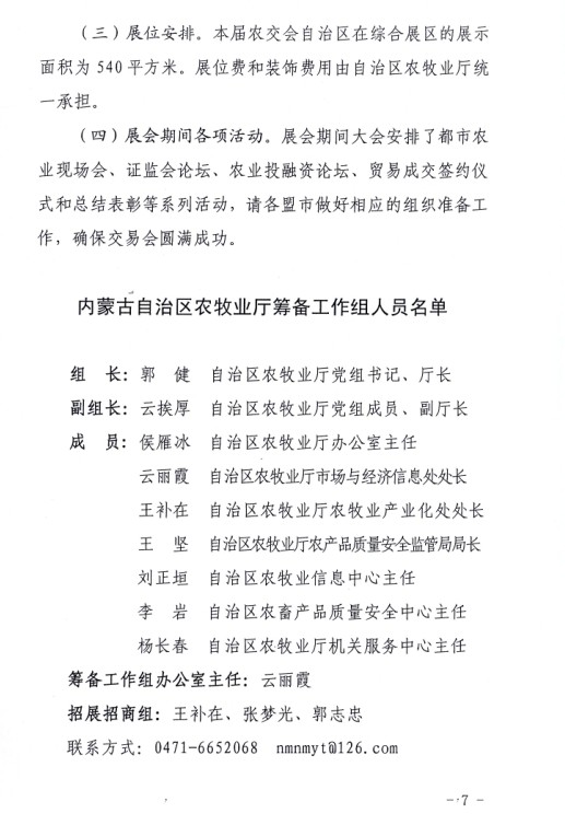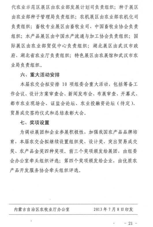 關(guān)于印發(fā)內蒙古自治區參加第十一屆中國國際農產(chǎn)品交易會(huì )工作方案的通知