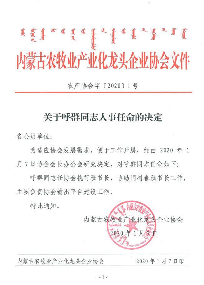 關(guān)于呼群同志人事任命的決定