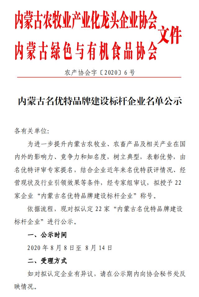 內(nèi)蒙古名優(yōu)特品牌建設(shè)標(biāo)桿企業(yè)名單公示