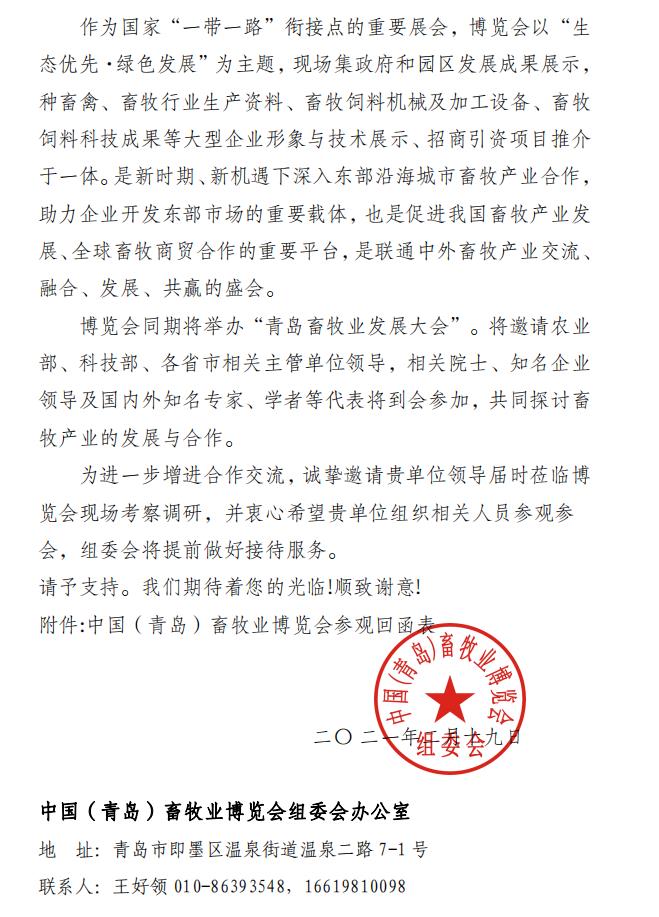 關(guān)于函請參觀中國(青島)畜牧業(yè)博覽會的函