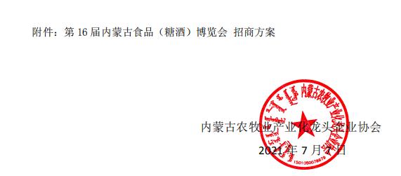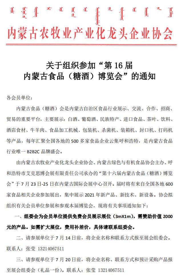 關(guān)于組織參加“第16屆內(nèi)蒙古食品(糖酒)博覽會”的通知