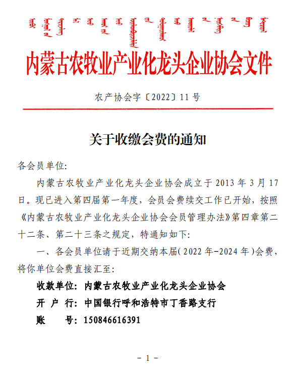 關(guān)于收繳會費的通知