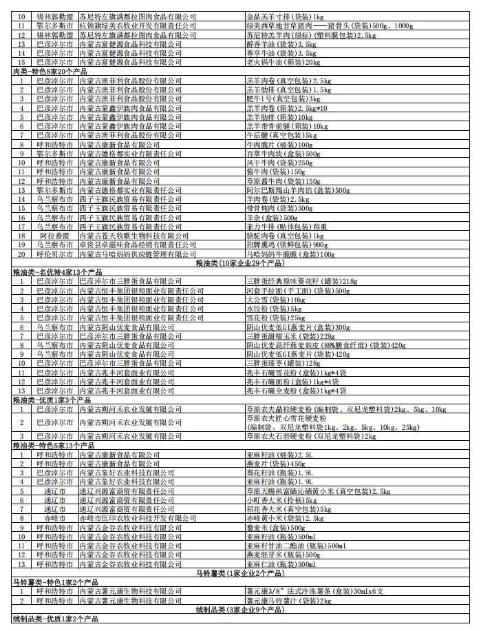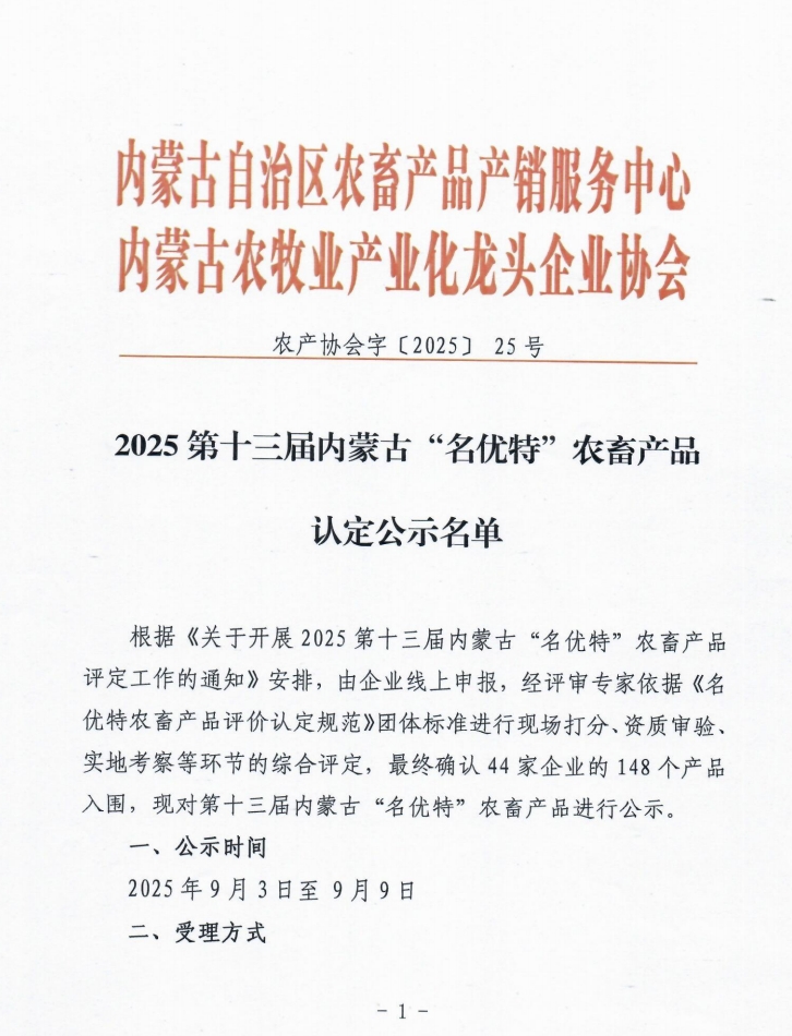 2025第十三屆內蒙古“名優(yōu)特”農畜產(chǎn)品認定公示名單