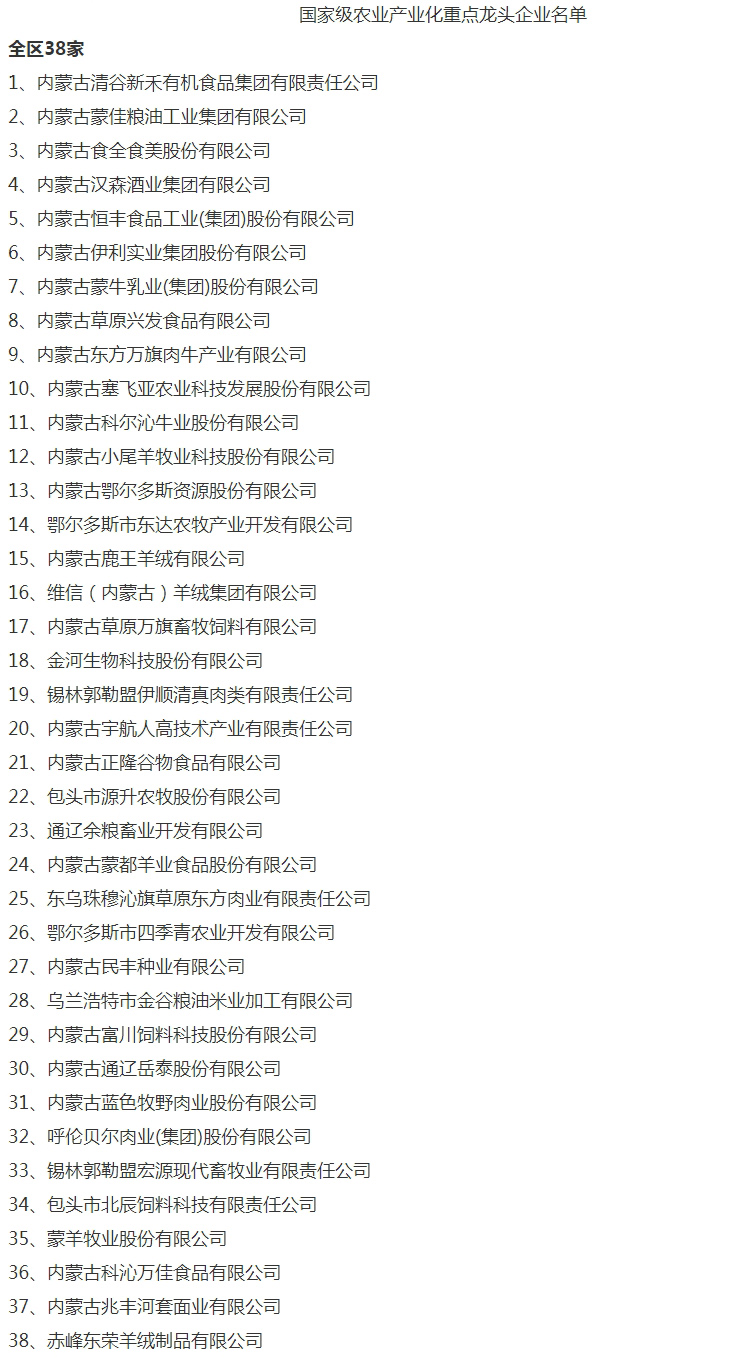 企業(yè)名稱(chēng):截止2017年末國家級農業(yè)產(chǎn)業(yè)化重點(diǎn)龍頭企業(yè)名單