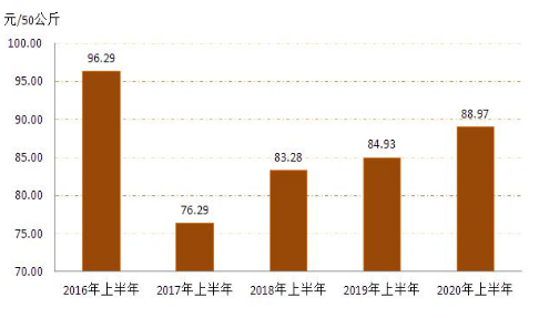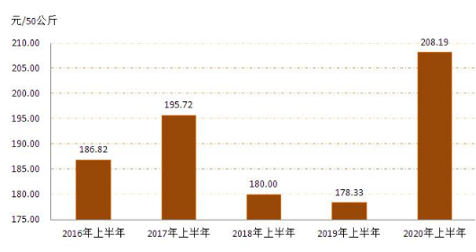 4   20162020年上半年全區玉米收購價(jià)格對比圖