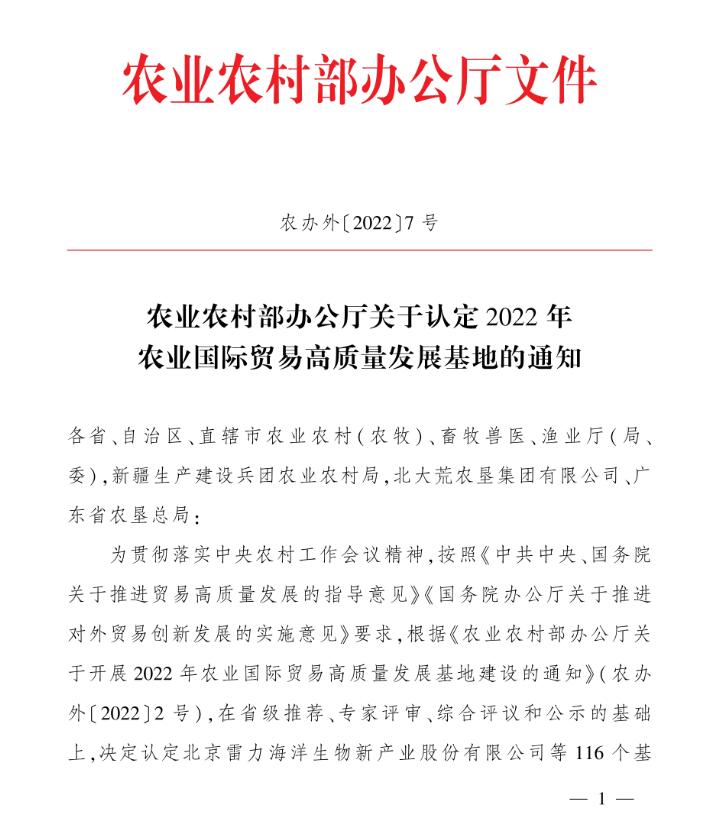 標題:祝賀:我區5家企業(yè)被認定為2022年度農業(yè)國際貿易高質(zhì)量發(fā)展基地