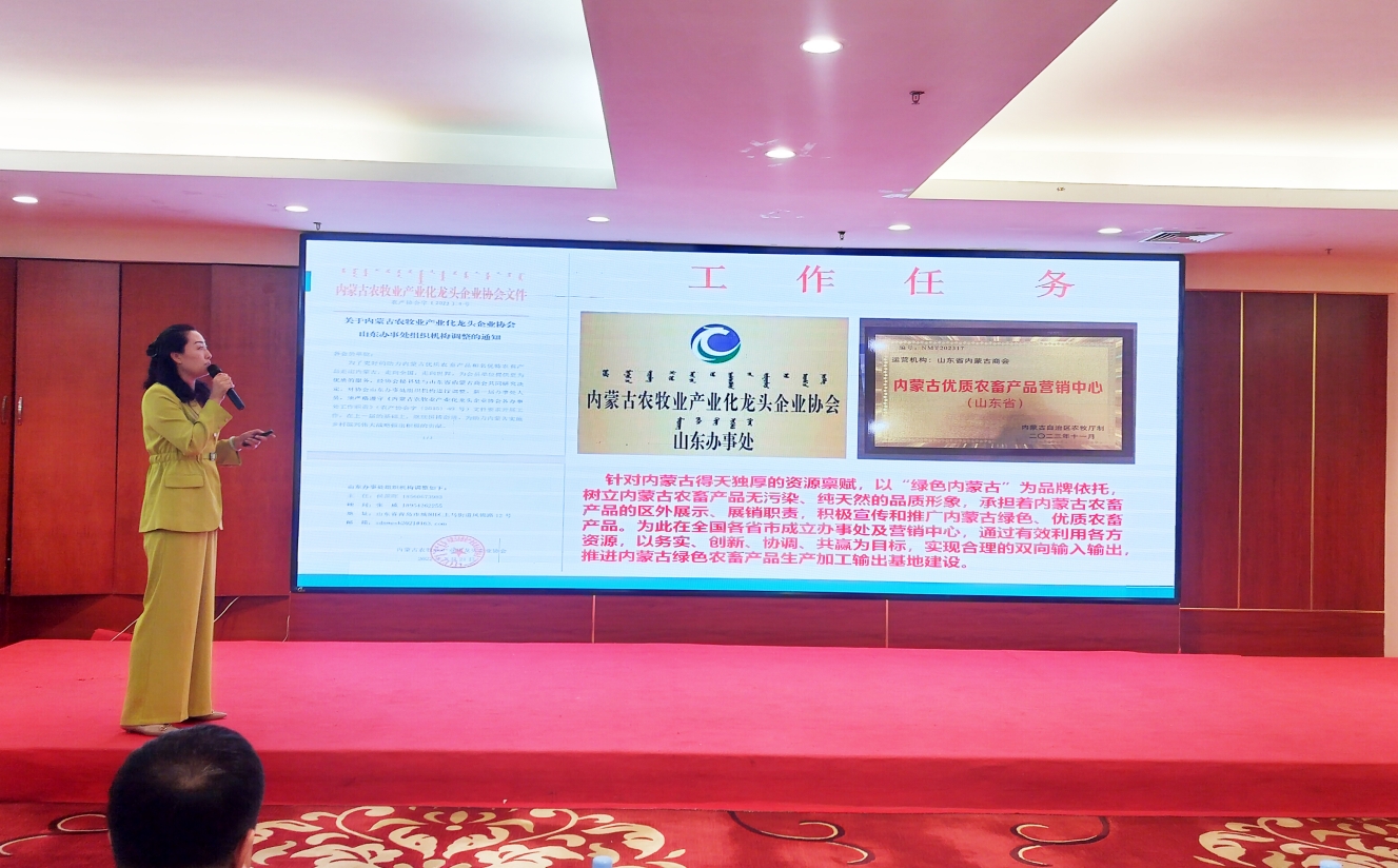 2025年5月21日上午,內蒙古農牧業(yè)產(chǎn)業(yè)化龍頭企業(yè)協(xié)會(huì )第五屆第一次會(huì )員代表大會(huì )暨第一次理事會(huì )在呼和浩特市職工之家四樓如意廳順利召開(kāi)。自治區農牧廳(鄉村振興局)黨組成員、副廳長(cháng)海山,自治區民政廳社會(huì )組織管理和執法監督局副局長(cháng)陸鴻雁,自治區工商業(yè)聯(lián)合會(huì )黨組成員、副主席白春艷,自治區黨委社會(huì )工作部二處處長(cháng)、一級調研員格日樂(lè )圖,自治區農牧業(yè)科學(xué)院副院長(cháng)崔茂盛,自治區農牧業(yè)技術(shù)推廣中心鄉村產(chǎn)業(yè)推進(jìn)處處長(cháng)張福柱,自治區商務(wù)廳流通業(yè)發(fā)展處主任科員陳星等相關(guān)部門(mén)負責人出席會(huì )議。內蒙古農牧業(yè)產(chǎn)業(yè)化龍頭企業(yè)協(xié)會(huì )第四屆理事會(huì )會(huì )長(cháng)周勇、第五屆理事會(huì )會(huì )長(cháng)徐建忠參加會(huì )議。會(huì )議應到251人,實(shí)到183人,符合法定人數。會(huì )議由協(xié)會(huì )秘書(shū)長(cháng)呼群主持。