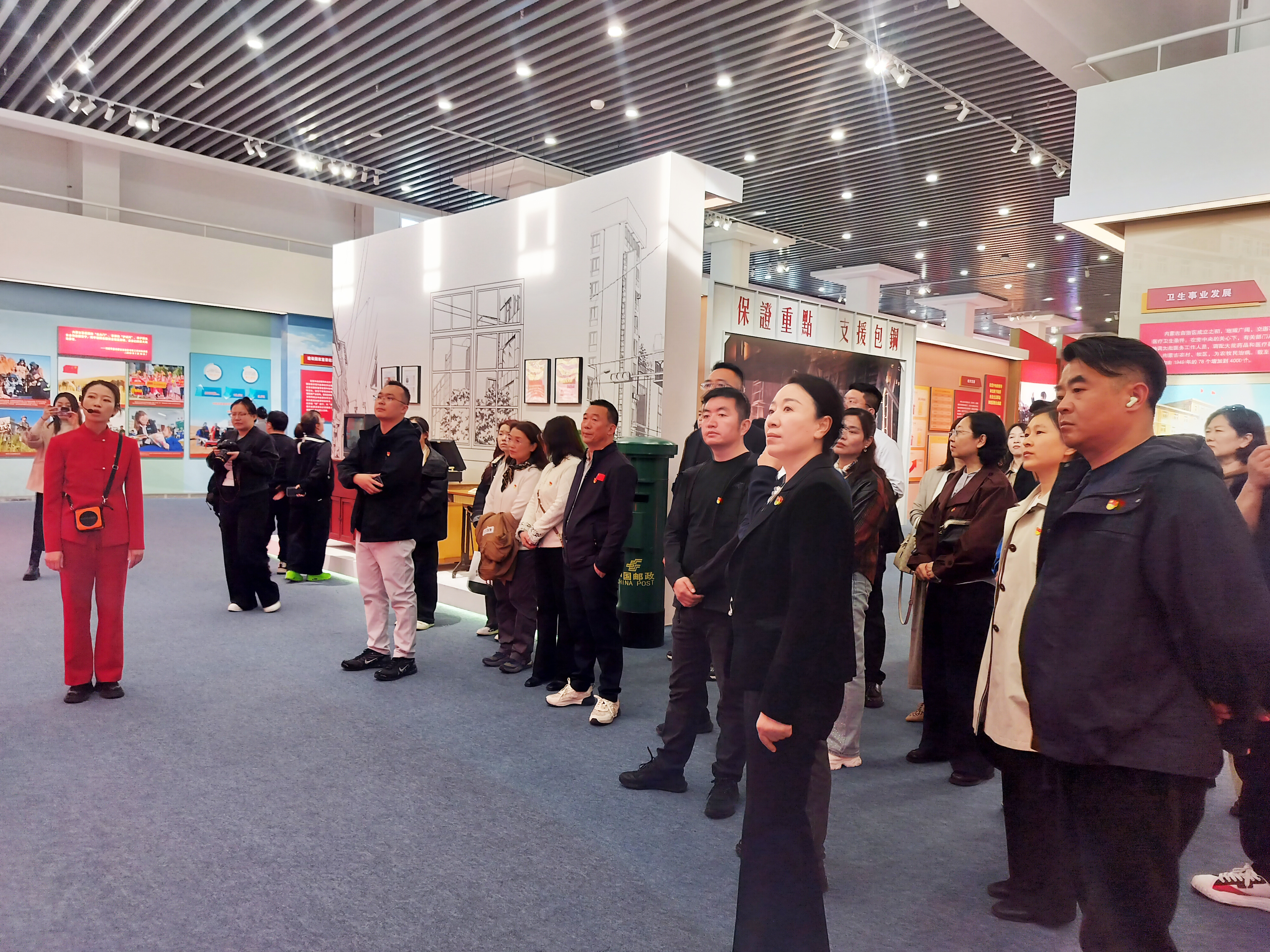 黨員們參觀(guān)了內蒙古展覽館內“牢記囑托 感恩奮進(jìn)——辦好兩件大事 奮力書(shū)寫(xiě)中國式現代化內蒙古新篇章”主題展。該主題展以鑄牢中華民族共同體意識為主線(xiàn),通過(guò)6個(gè)部分集中展示了全區各族干部群眾緊跟習近平總書(shū)記奮進(jìn)新征程、建功新時(shí)代的生動(dòng)實(shí)踐。黨員們認真聽(tīng)取講解,通過(guò)一幅幅充滿(mǎn)活力的圖片展示,深入了解內蒙古地區新時(shí)代的奮進(jìn)歷程,深刻感悟到黨領(lǐng)導下的各族人民團結奮斗的光輝歷程與偉大成就,進(jìn)一步增強了維護民族團結、守望相助的思想自覺(jué)和行動(dòng)自覺(jué)。