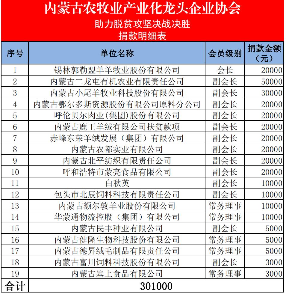 2020年,是全面建成小康社會(huì )目標實(shí)現之年,是全面打贏(yíng)脫貧攻堅戰收官之年,更是產(chǎn)業(yè)扶貧工作至關(guān)重要的一年,抓好此項工作責任重大、意義重大。受新冠肺炎疫情的影響,產(chǎn)業(yè)扶貧工作也必將會(huì )遇到新的挑戰,時(shí)間緊、任務(wù)重,內蒙古農牧業(yè)產(chǎn)業(yè)化龍頭企業(yè)協(xié)會(huì )在內蒙古自治區農牧廳的指導下,克服困難、精心策劃、認真研究、取長(cháng)補短,持續抓好今年的幫扶工作,確保成效。