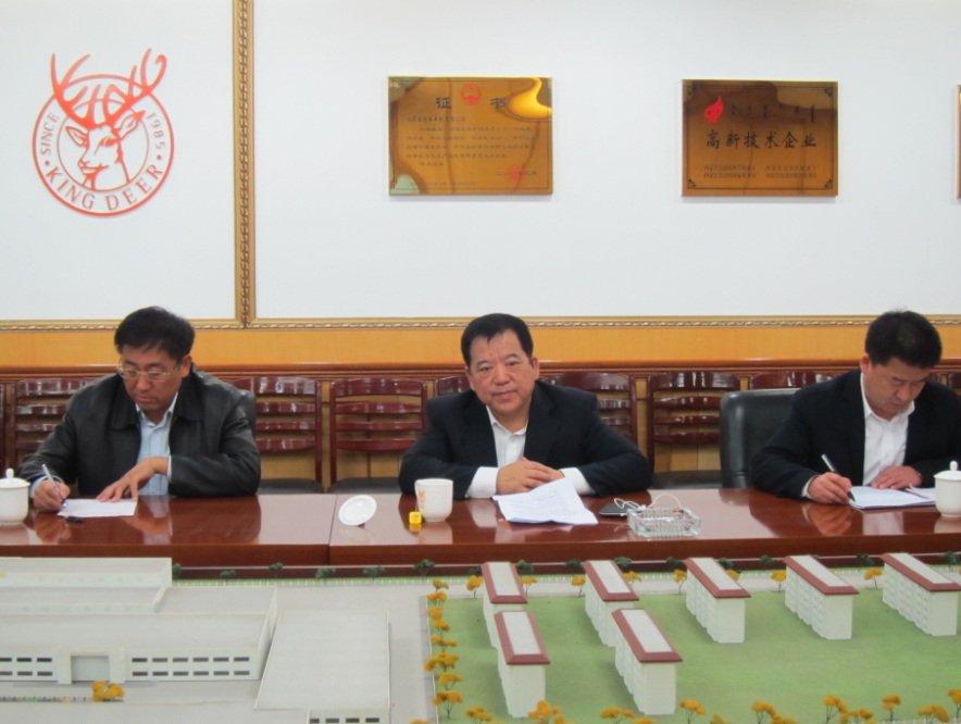 林永亮常務(wù)副會(huì )長(cháng)、羊絨分會(huì )會(huì )長(cháng)王風(fēng)之、秘書(shū)長(cháng)魯耀武在鹿王羊絨有限公司參加調研座談會(huì )