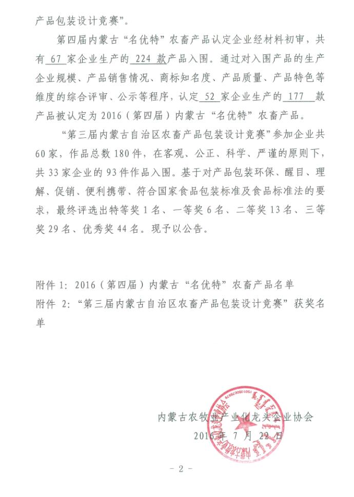 關(guān)于發(fā)布2016年(第四屆)內蒙古“名優(yōu)特”農畜產(chǎn)品及第三屆內蒙古自治區包裝設計競賽的公告