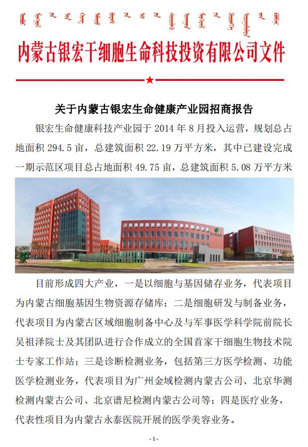 關(guān)于內蒙古銀宏生命健康產(chǎn)業(yè)園招商報告