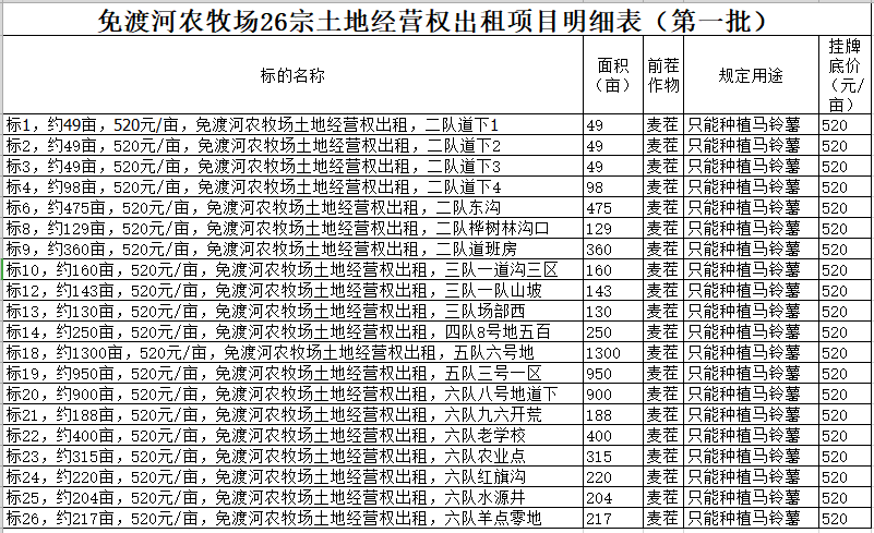 4.規定用途:第一批種植馬鈴薯,第二批種植甜菜,詳情以明細表為準