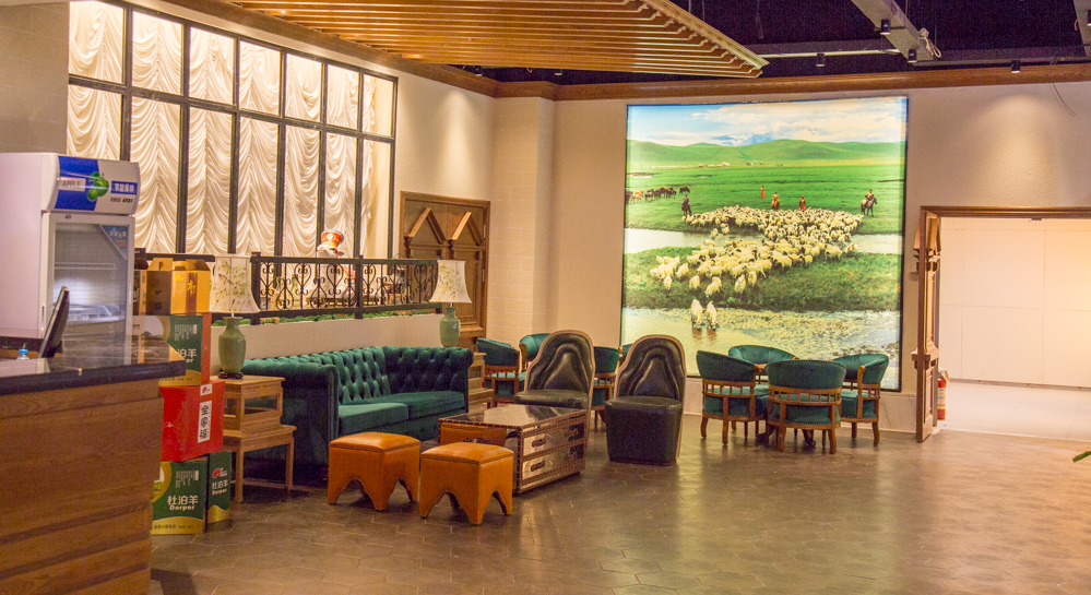 小尾羊蘇寧店,以明檔加工、明廚亮灶做為整體空間的切入口,以精湛的加工技藝呈現高品質(zhì)的草原生態(tài)冷鮮羊肉。