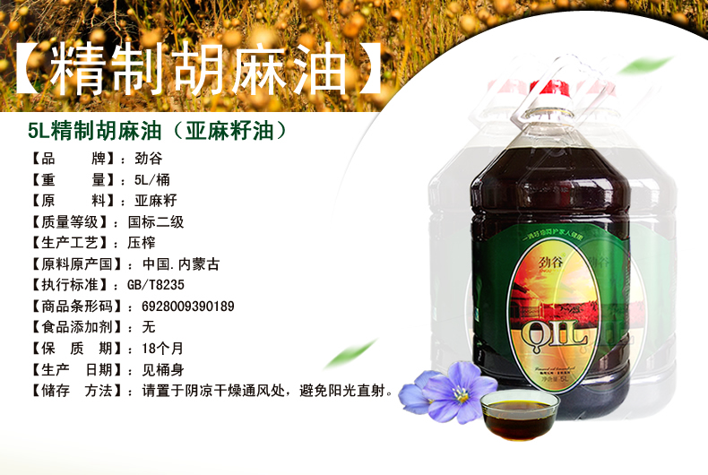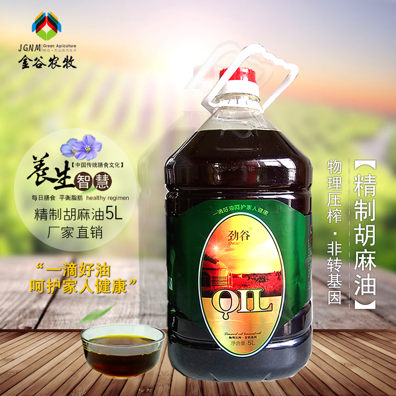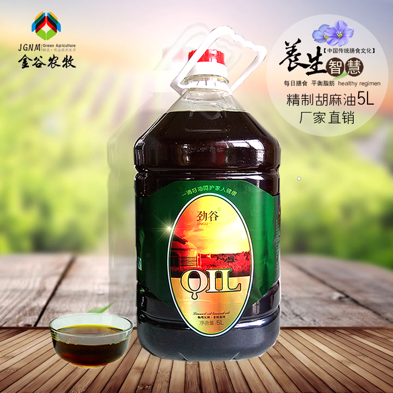 勁谷精制胡麻油5L 內蒙古胡麻油 廠(chǎng)家直銷(xiāo) 物理壓榨胡麻油