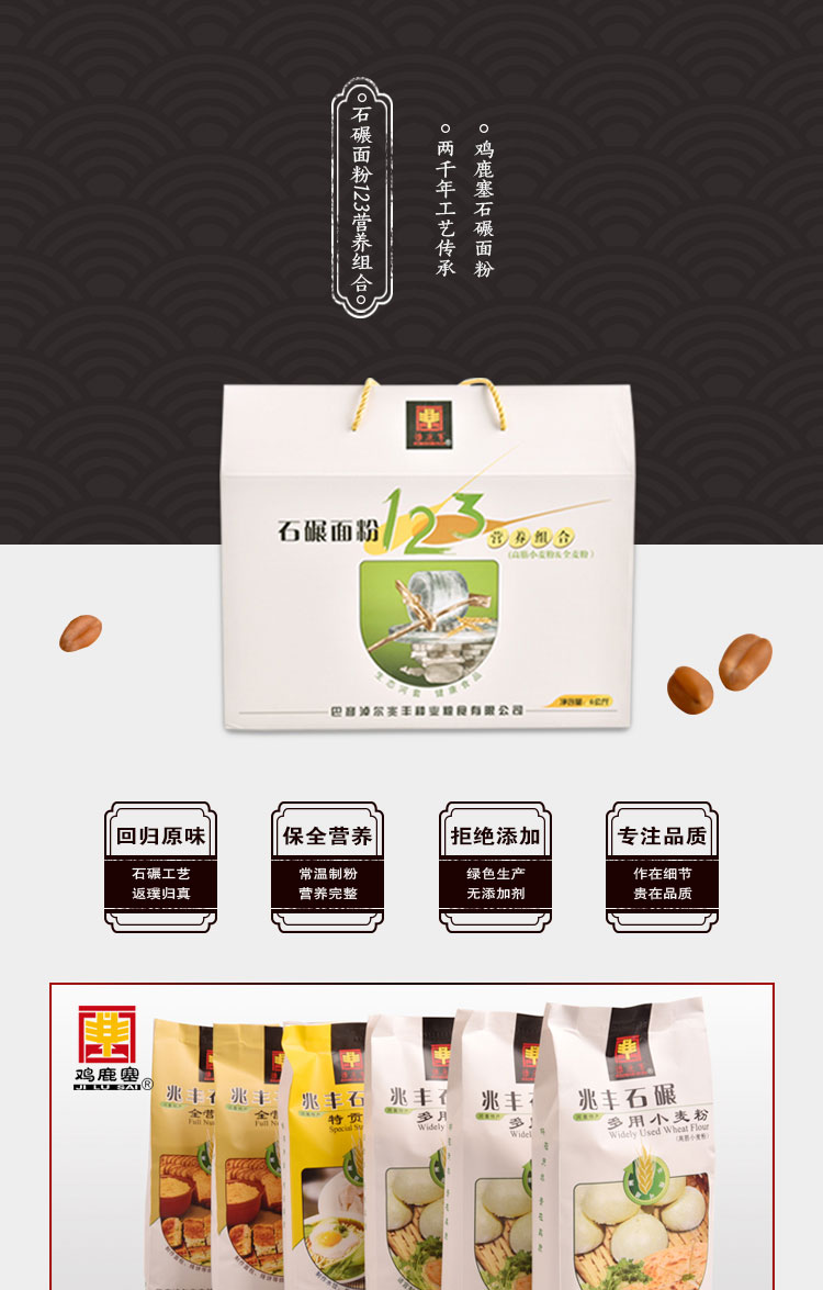雞鹿塞 石碾面粉123營(yíng)養組合 禮盒 6kg 河套高筋面粉 禮盒