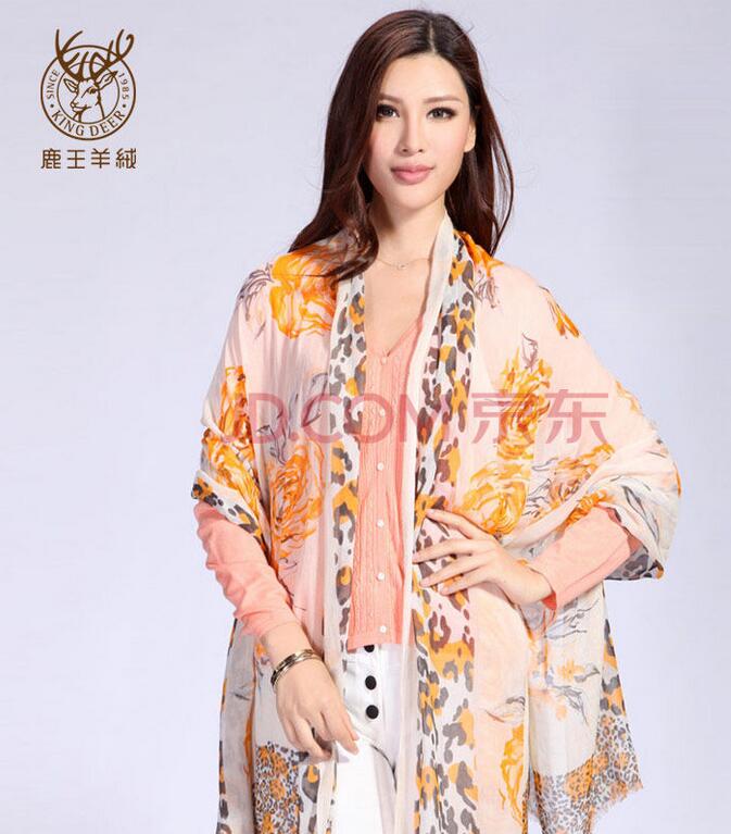 鹿王羊絨官方正品特價(jià)山羊絨女款豹紋披肩圍巾兩用薄款