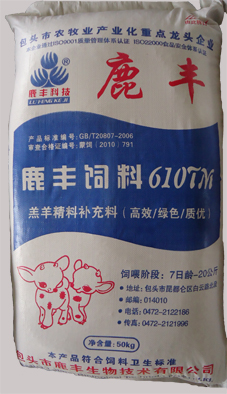 B、育肥羊濃縮飼料:執行標準Q/BLFS02-2013,主要原料組成:豆粕、菜粕、棉粕、DDGS、石粉、磷酸氫鈣、食鹽、復合預混料等。產(chǎn)品成分保證值:粗蛋白≧35.0,粗纖維≦14.0,粗灰分≦20.0,鈣1.8-4.0,總磷≧0.8,鹽1.0-2.0,水分≦14.0、賴(lài)氨酸≧0.8。