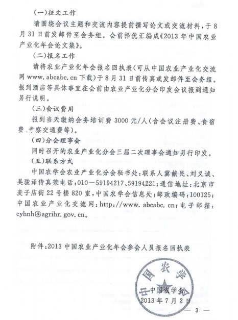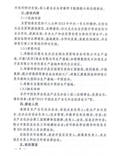 關(guān)于召開(kāi)“2013中國農業(yè)產(chǎn)業(yè)化年會(huì )暨中國農業(yè)企業(yè)家論壇”的通知