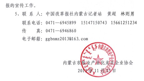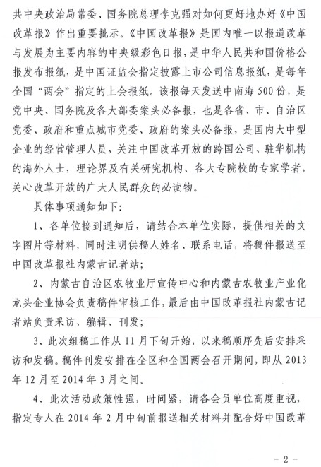 關(guān)于配合《中國改革報》開(kāi)展對內蒙古農牧業(yè)產(chǎn)業(yè)化龍頭企業(yè)宣傳報道的通知