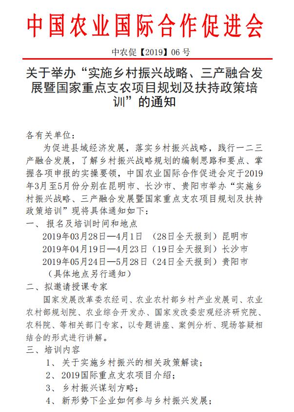 附件:關(guān)于舉辦“實(shí)施鄉(xiāng)村振興戰(zhàn)略、三產(chǎn)融合發(fā)展暨國家重點(diǎn)支農(nóng)項目規(guī)劃及扶持政策培訓(xùn)”的通知