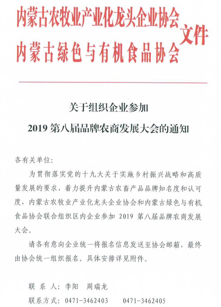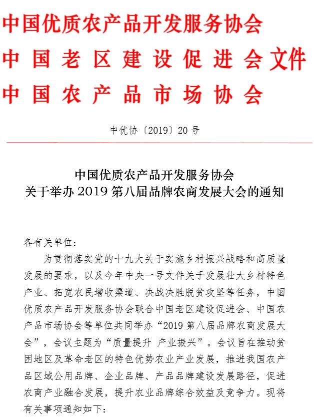 關于組織企業(yè)參加2019第八屆品牌農(nóng)商發(fā)展大會的通知
