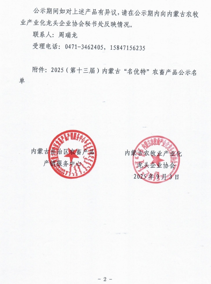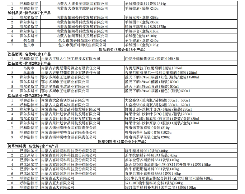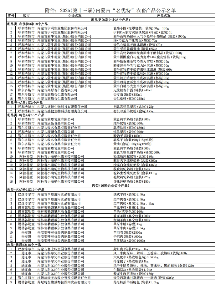 2025第十三屆內蒙古“名優(yōu)特”農畜產(chǎn)品認定公示名單