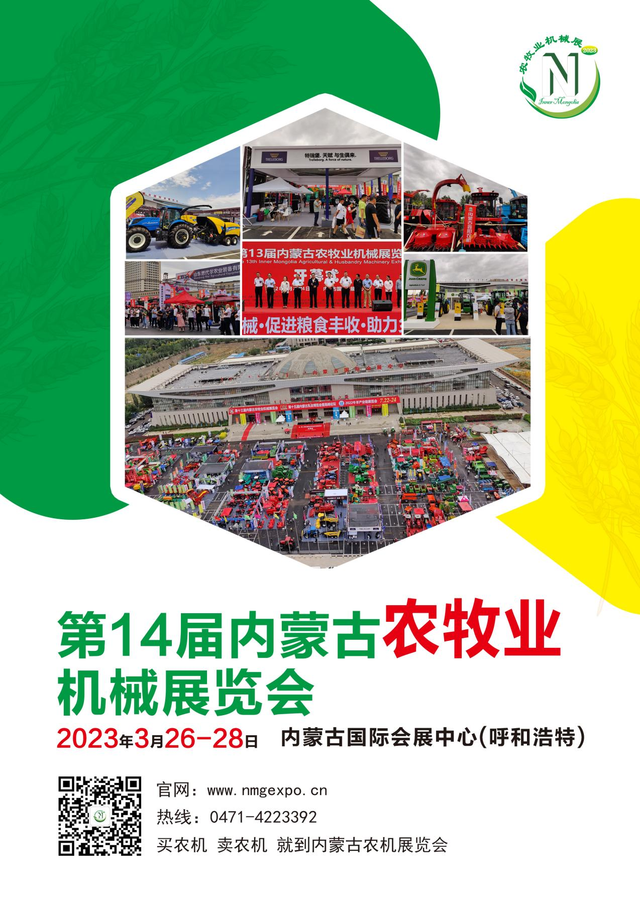 2023年3月26-28日讓我們相約第十四屆內蒙古農牧業(yè)機械展覽會(huì ),共同見(jiàn)證農牧業(yè)機械的發(fā)展與變革,發(fā)現新的機遇,共創(chuàng )新的輝煌。